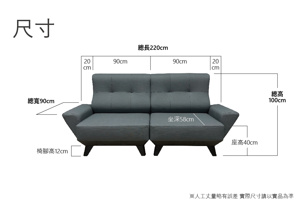 尺寸:長220 寬90 高100 座深58CM